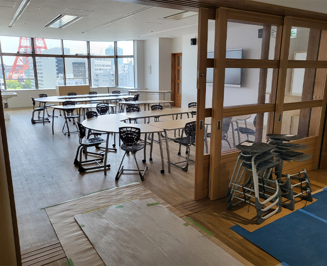 【機材搬入事例】港区ブリティッシュスクールへ、机・椅子をはじめとする機材の搬入・設置を行いました。 安心・安全な作業で、学びの場づくりをサポートしています